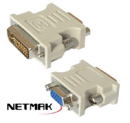 | Adaptador de video DVI a VGA NM-C15 Este adaptador DVI 24+5M - HD15F con conectores dorados de primera calidad permite utilizar un cable de video VGA/SVGA estándar como los utilizados en los monitores habituales de las PCs, para conectar por medio del mismo dispositivos que tienen una interface de conexión del tipo DVI Digital Visual Interface en lugar de la clásica HD15 utilizada en los monitores VGA/SVGA comunes. |