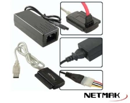 | Adaptador USB a IDE/SATA NM-C61 Conecte por USB dispositivos internos como CD-RW, DVD y discos duros tanto de portátiles (2.5") como ordenadores de sobremesa IDE y SATA. (3.5").